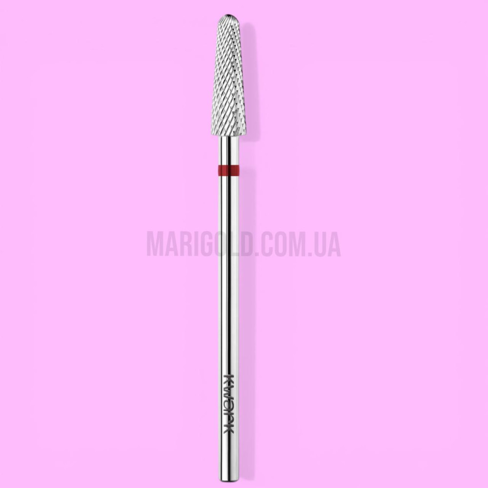 KWARK конус заокруглений червона 4 мм / 12,7 мм — практичний вибір для майстрів, яким потрібна карбід-вольфрамова фреза для делікатного зняття гель-лаку та акуратного випилювання з м’яким зрізом, стабільною роботою та комфортом у щоденній практиці.