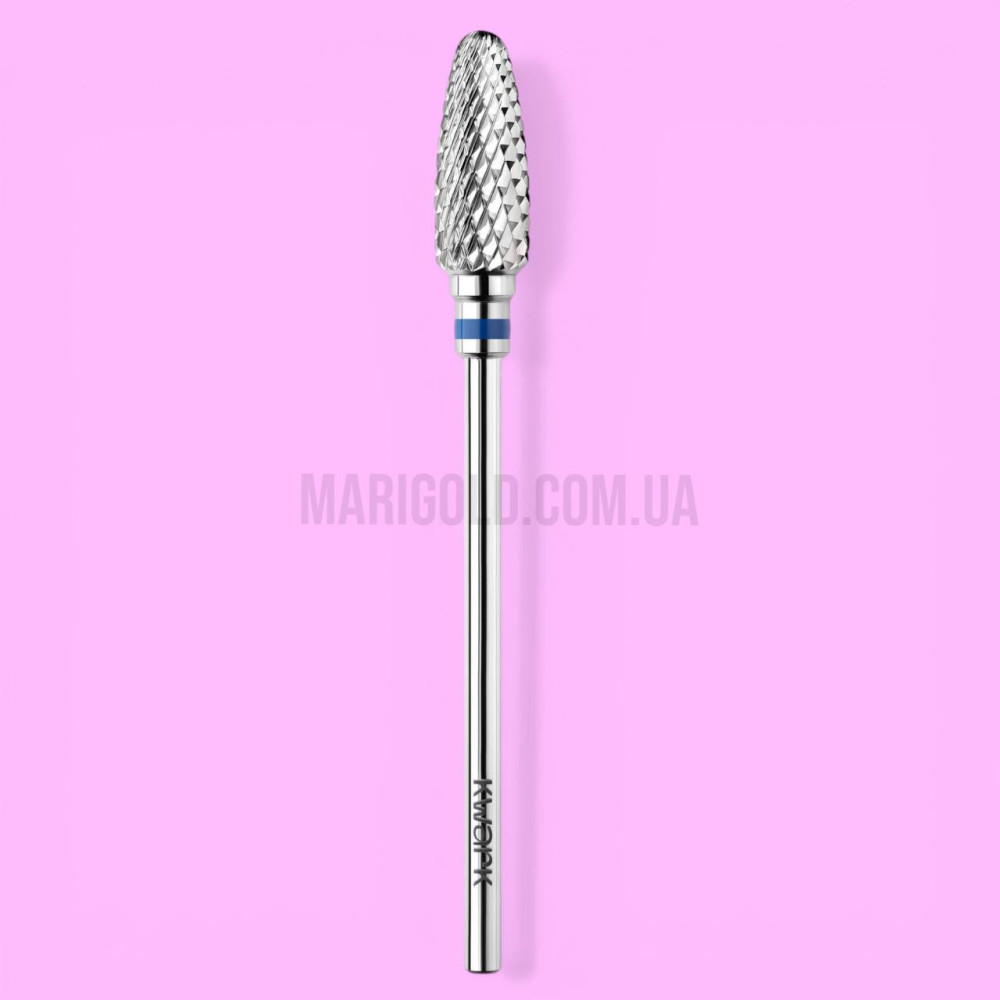 KWARK конус заокруглений «кукурудза» синя 6 мм / 14,5 мм — практичний вибір для майстрів, яким потрібна карбід-вольфрамова фреза для зняття гелю, акрилу та полігелю з більш м’яким, контрольованим зрізом і комфортною роботою на щодень.