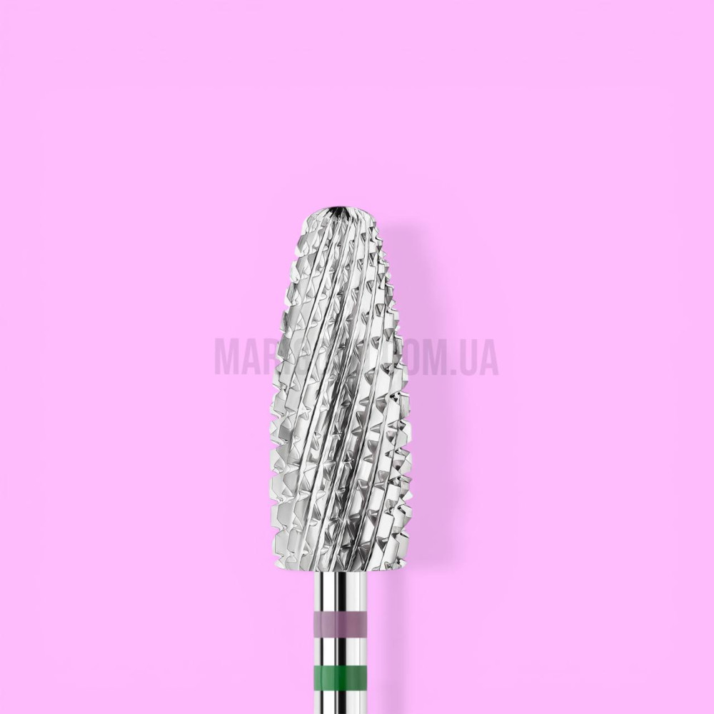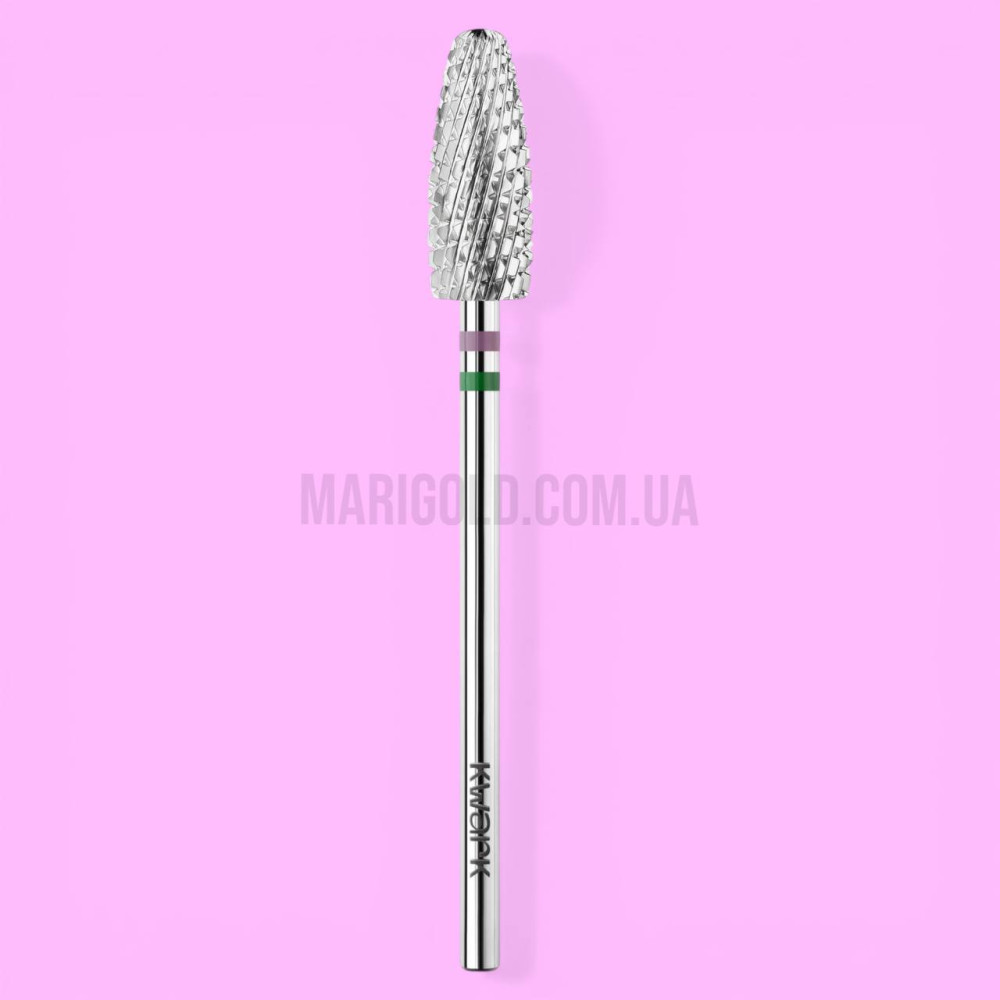 Фреза карбід-вольфрамова KWARK Shark Blade (перехресно-спіральна насічка) конус великий «кукурудза» зелена 6 мм / 15 мм