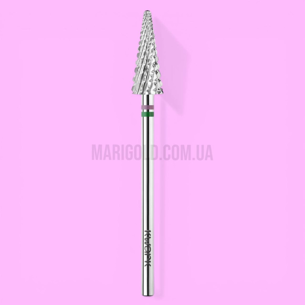 Фреза карбід-вольфрамова KWARK Shark Blade (перехресно-спіральна насічка) конус «ялинка» зелена 6 мм / 15 мм