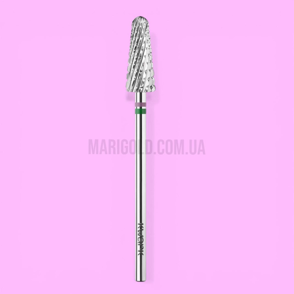 Фреза карбід-вольфрамова KWARK Shark Blade (перехресно-спіральна насічка) конус заокруглений зелена 6 мм / 15 мм