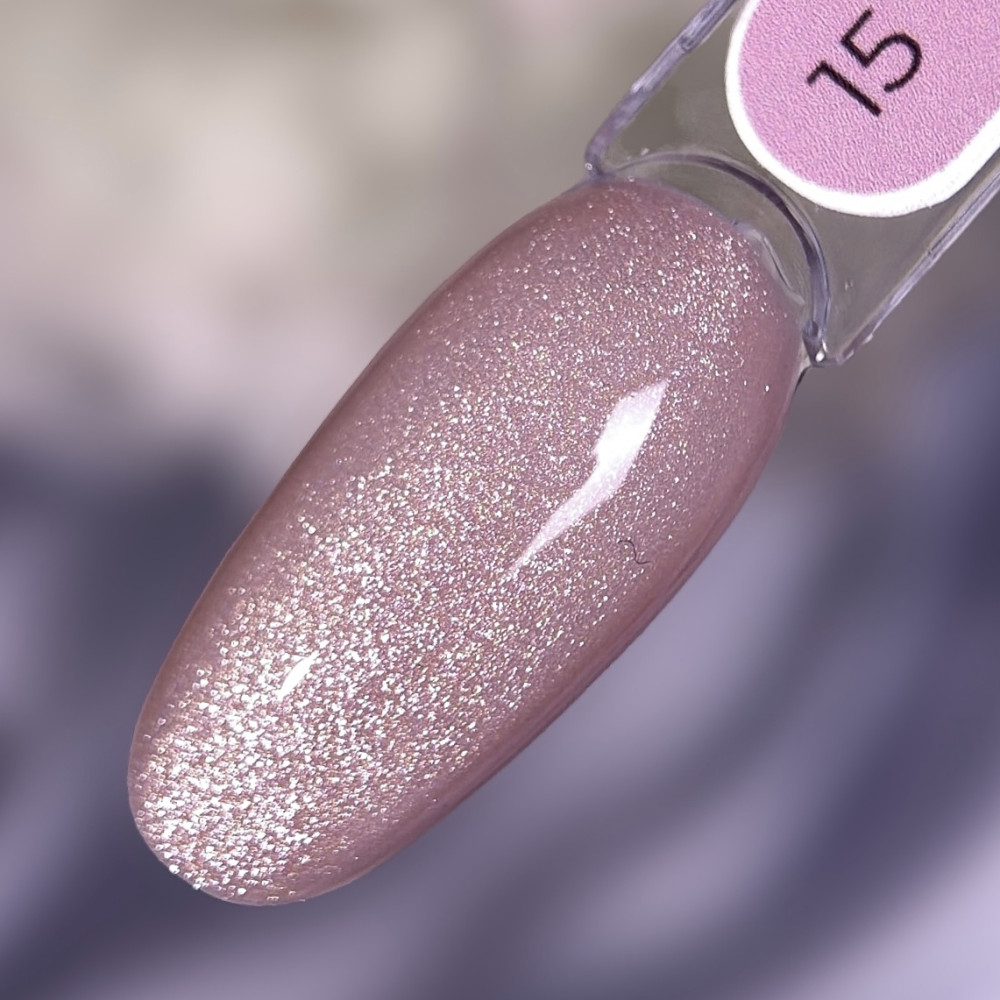Гель-лак RAY «Svitlo» №15, 8 мл — це ніжний рожево-пудровий відтінок із магнітним ефектом “котяче око” та делікатним сяйвом, яке красиво розкривається в русі.