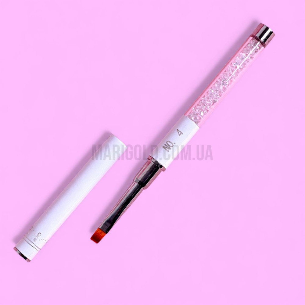 - Модель: Пензель №4 прямий для гелю (білий, ручка з кристалами)