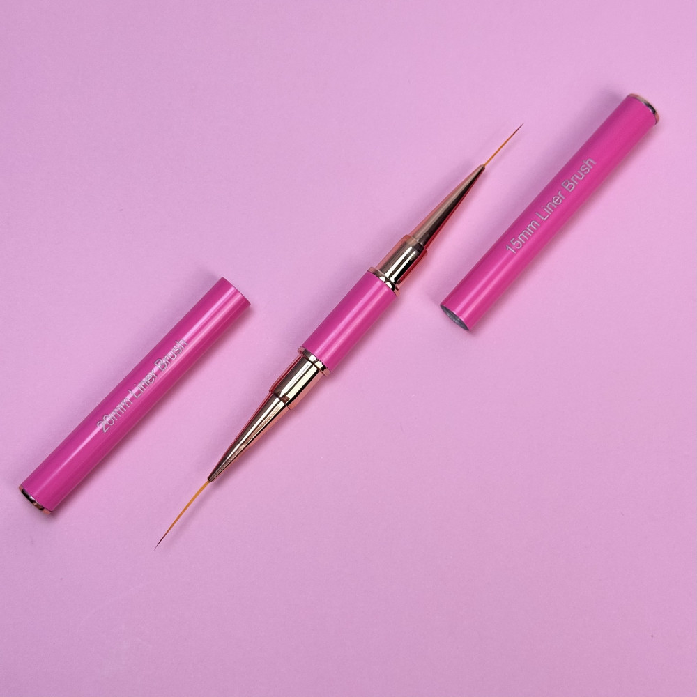 Двосторонній пензлик для малювання — ідеальний помічник у роботі майстра манікюру. Один кінець має ворс довжиною 15 мм, інший — 20 мм, що дозволяє виконувати різні техніки дизайну: від тонких ліній до плавних контурів і художніх елементів.