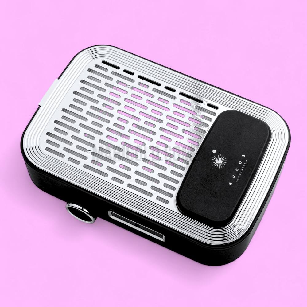 Bucos Cyclone V3‑B — це професійна манікюрна витяжка з потужністю 100 Вт і вбудованим акумулятором, що дозволяє працювати без розетки до 1,5 години. Оснащена НЕРА-фільтром замість мішка для пилу, який легко чистити після кожного клієнта. Ідеальний вибір для салону, студії або виїзду.